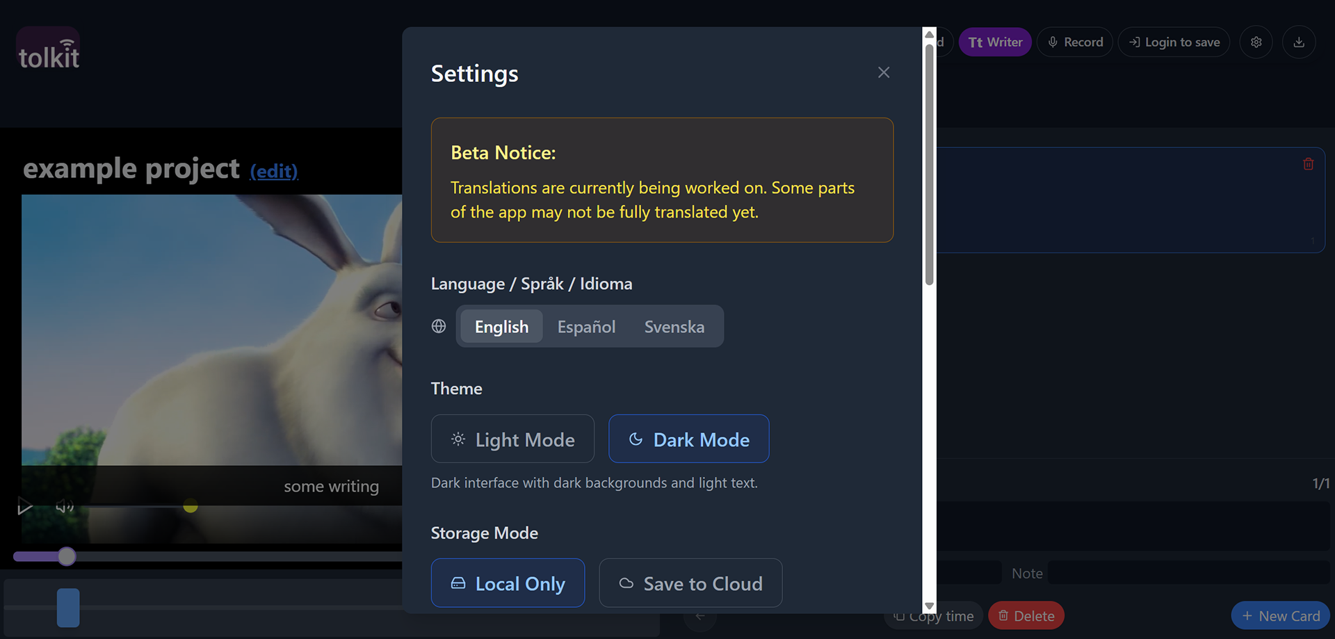 Tolkit is a browser-based workspace for creating audio description. It's the first in a planned suite of tools built specifically for accessibility professionals as well as for blind and visually impaired users.